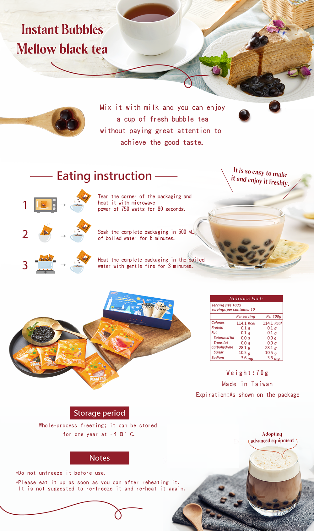 即食珍珠添加新鮮紅茶粉,搭配黃金比例經典黑糖,濃醇厚實的香氣讓鮮甜珍奶變得更有層次。