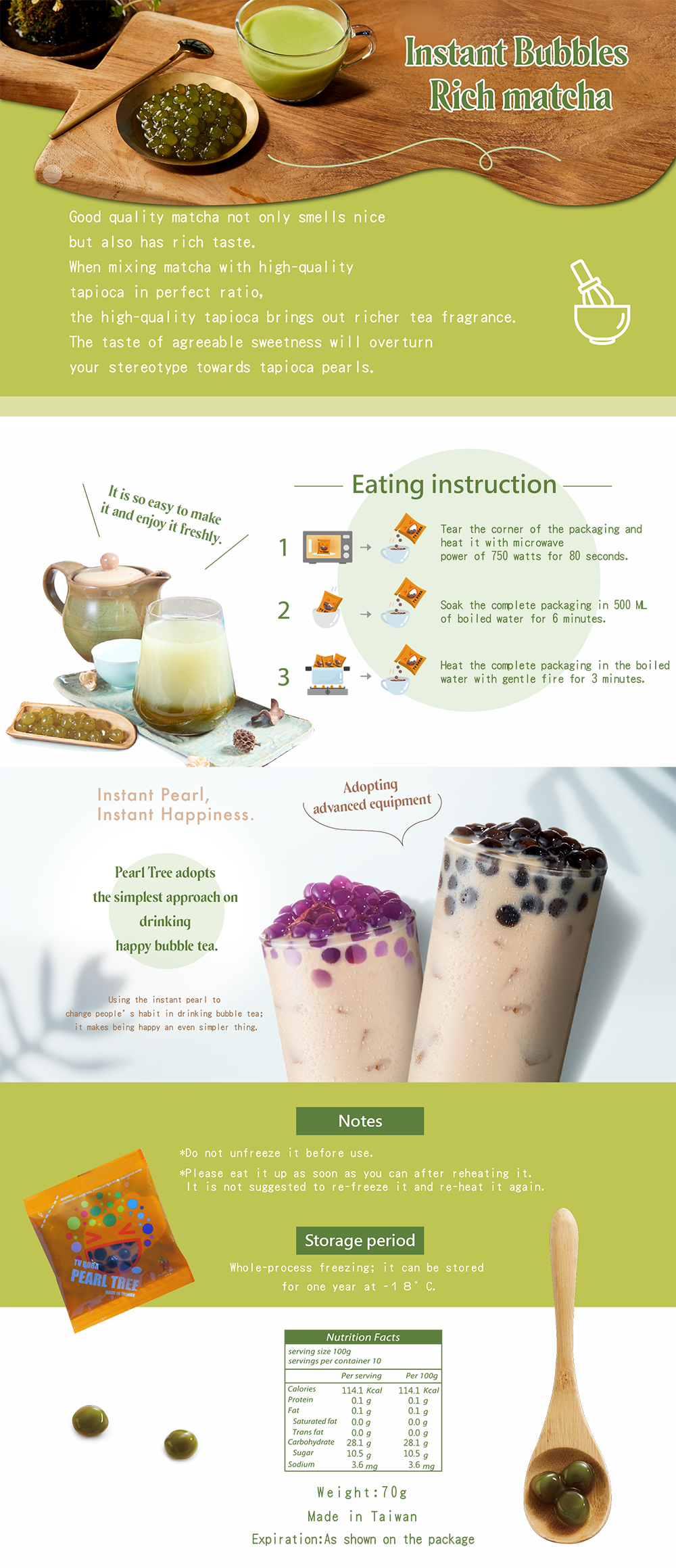 濃郁茶香的頂級抹茶粉和頂級木薯粉完美搭配Q彈即食珍珠,